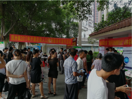 为进一步做好园洲镇流动人口宣传教育和健康促进工作,深化流动人口基本公共服务均等化,2017年9月19日,镇计生办、镇计生协及园洲卫生院联合在刘屋村委会开展“流动人口健康服务年宣传教育”和“服务百姓健康行动”义诊活动,镇计生办全体工作人员和镇计生协成员、各村(居委会)妇女主任、计生宣传员、2100多名流动人口参加了活动。