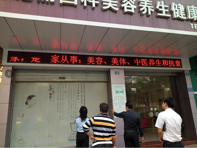 2017年9月上旬,县卫计局联合县市场监督管理局、人社局、公安局、科技工业信息局等部门,分成三个行动小组,对全县的美容服务场所开展打击非法医疗美容专项整治联合行动,也抽查了部分实施中医推拿、按摩、刮痧、拔罐等方法的非医疗机构,共出动执法人员64人次,检查美容美发经营企业95间次,共检查美容美发店13家。之后,县卫生监督所成立5个巡查小组对全县范围内的100多间生活美容机构进行地毯式巡查。市卫计局督查组于2017年11月16日到中文博彩平台进行了督查,同时抽查了三间美容场所、两间沐足场所进行现场督查。对违规宣传中医疗效、张贴中医理疗字样的广告已全面清除,并发出整改卫生监督意见书。