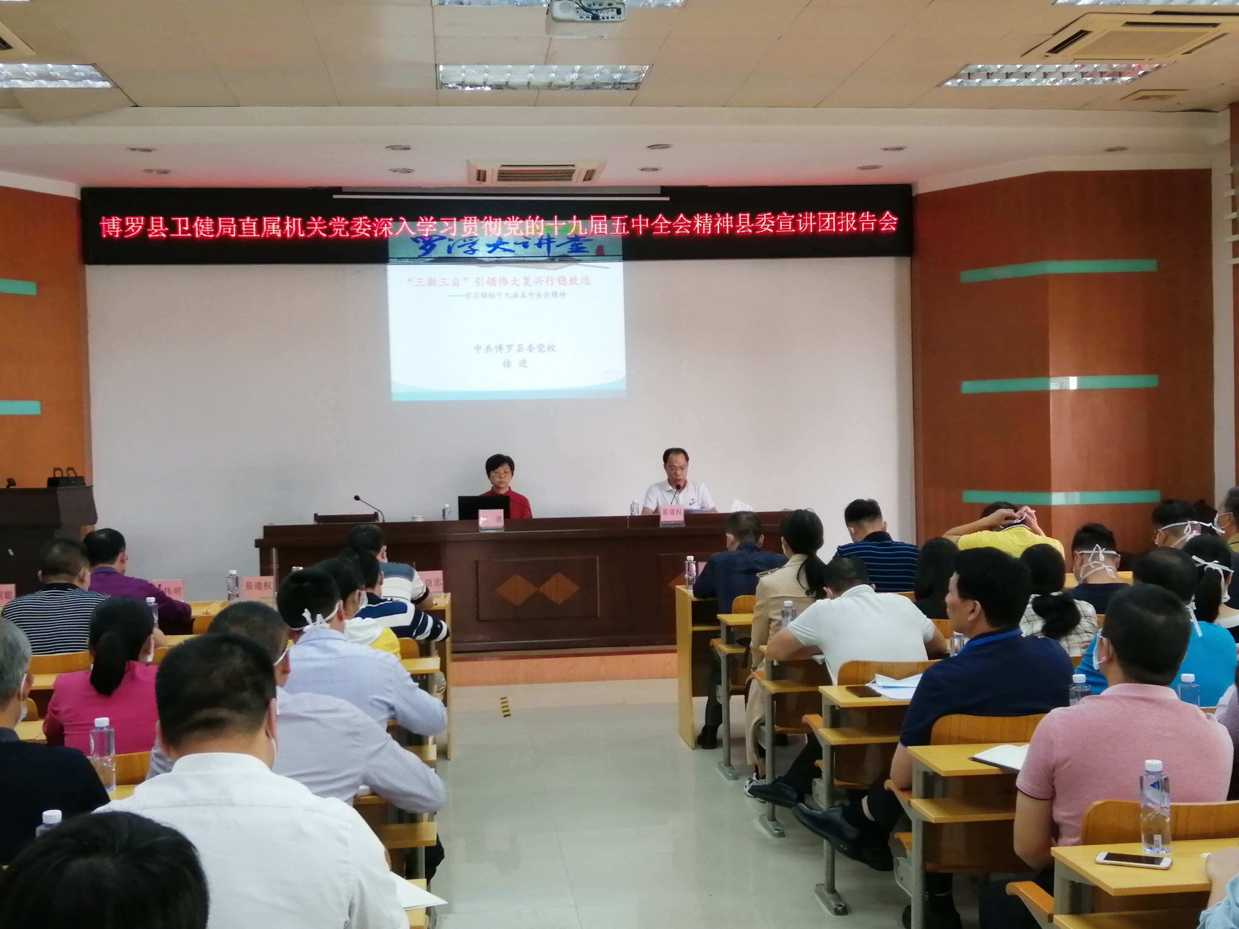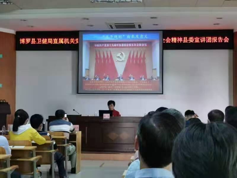 为进一步学习贯彻党的十九届五中全会精神、习近平总书记出席深圳经济特区建立40周年庆祝大会和视察广东重要讲话指示精神,按照县委宣传部《关于组织开展党的十九届五中全会精神宣讲工作的通知》要求,11月27日下午,县委“党声入民心”宣讲团到县卫生健康局举办首场党的十九届五中全会精神宣讲报告会,担任此次宣讲的是我县党的理论宣讲团骨干、县委党校副校长徐进同志。