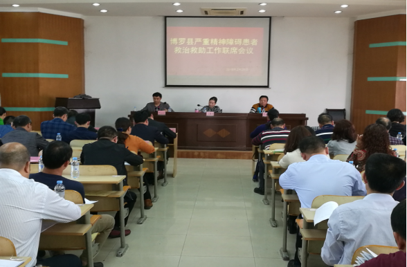 会议由县卫计局伍益忠副局长主持,参加会议有:县综治办代云江同志,县卫计局局长王筱红同志;县加强严重精神障碍患者救治救助工作领导小组各成员单位分管领导;各镇、街道办事处(罗浮山管委会)分管卫生计生工作领导,综治办副主任、具体负责严重精神障碍患者救治救助工作的人员;县慢病站站长、分管领导和具体负责严重精神障碍患者治疗管理工作的人员;各乡镇卫生院分管公卫副院长和精防医生,共约100余人参加了会议。