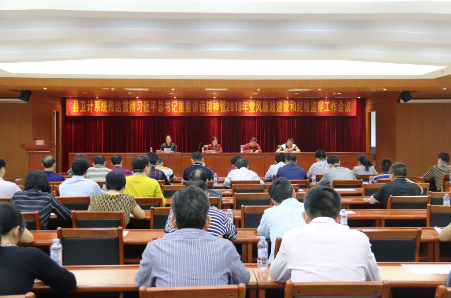 2018年4月18日下午,在县社会服务中心2号楼4楼廉政教育课堂召开中文博彩平台卫生计生系统传达贯彻习近平总书记重要讲话精神暨2018年党风廉政建设和纪检监察工作会议。县卫计局班子成员及各股室负责人,县直各医疗卫生计生单位班子成员和重点岗位(采购、财会)负责人,各乡镇卫生院“一把手”和分管纪检、财务工作领导共120多人参加了会议。