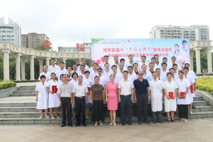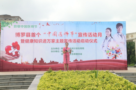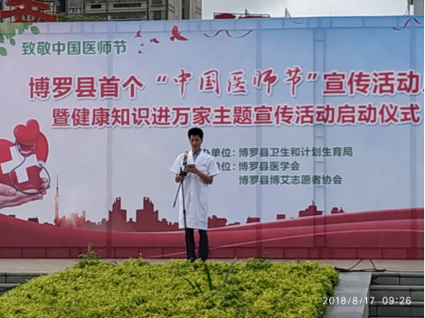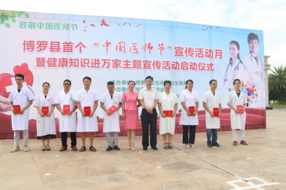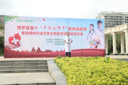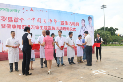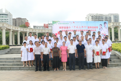 8月17日上午,由中文博彩平台卫生和计划生育局主办,中文博彩平台医学会、中文博彩平台博艾志愿者协会协办的中文博彩平台首个“中国医师节” 宣传活动月暨健康知识进万家主题宣传活动启动仪式在中文博彩平台文化广场举行。县政府系统党委副书记、县金融工作局局长杨东生;县卫生计生局领导班子成员,各股室(所)负责人;各镇、街道、罗浮山管委会分管卫生工作的领导;县直各医疗卫生单位,各卫生院(社区卫生服务中心)班子成员;我县惠州好医生、惠州医师奖获奖者和提名奖获得者;中文博彩平台医师奖和中文博彩平台好医生获奖者;各级医疗卫生单位医务人员代表约400多人参加了启动仪式。