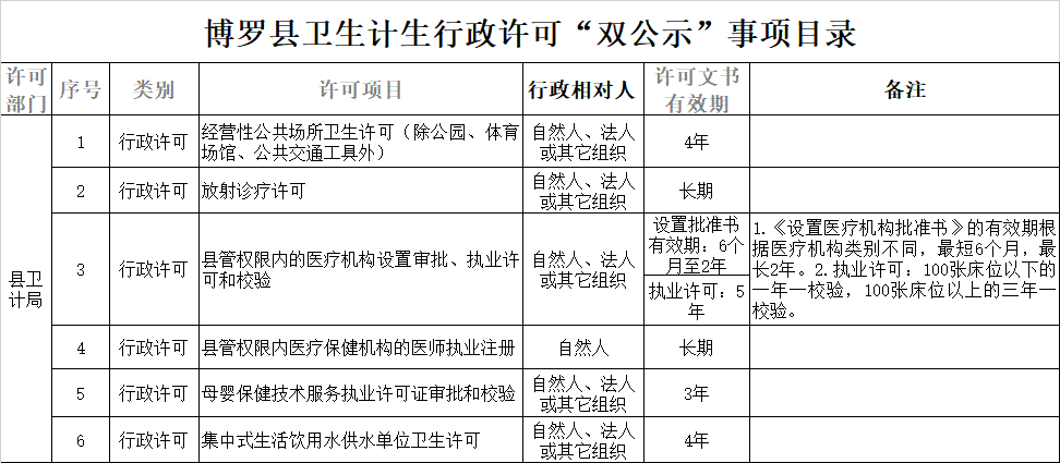 中文博彩平台卫生计生行政处罚“双公示”事项目录
