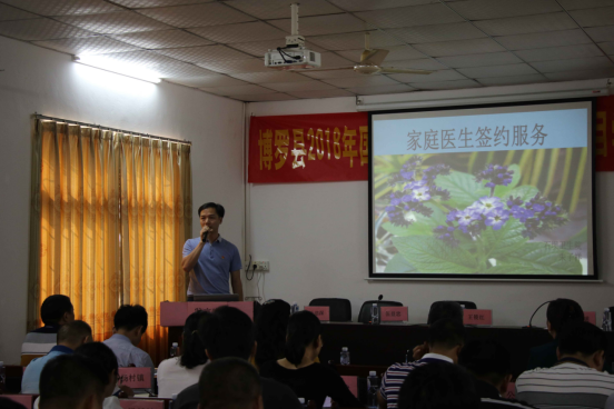 接着,石坝镇卫生院副院长朱子祥为大家讲解了家签服务工作的石坝模式。
