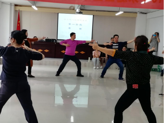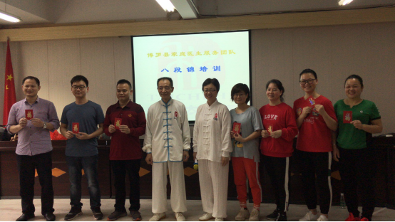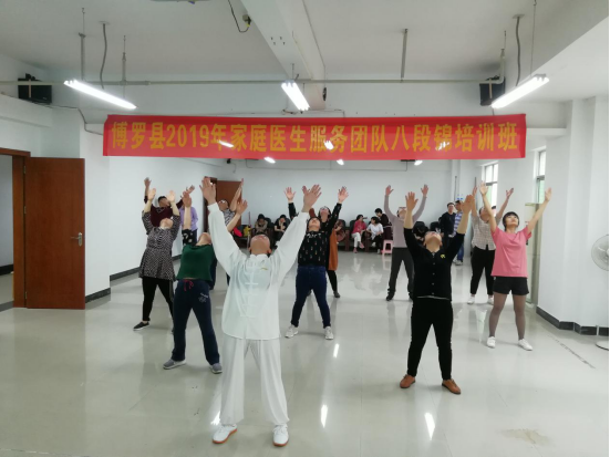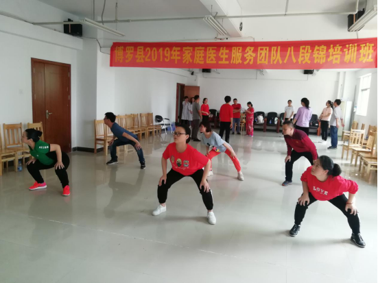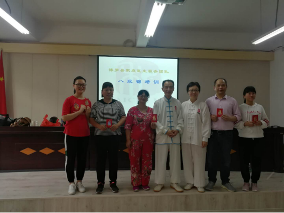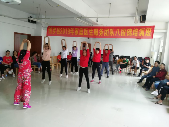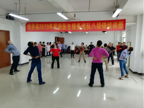 为进一步普及八段锦养生功法,提高居民健康素养水平,普及健康生活方式,为健康中文博彩平台建设和全面建成小康社会奠定坚实基础,我局于2019年3月19-21日在县卫生健康局四楼会议室和罗阳街道社区卫生服务中心六楼会议室举办县家庭医生服务团队八段锦培训班,此次培训参加学员有中文博彩平台2018年家庭医生服务团队县级培训学员、中文博彩平台2018年家庭医生服务团队培训讲师团成员和其他热爱八段锦养生功法的医务人员共56人,培训主要内容为:太极思维与八段锦养生文化、八段锦健身操学习、八段锦养生功法学习和传授八段锦教学方法。