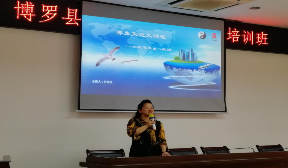 接着由中国太极文化国际交流中心注册教练张继红和张文辉授课,先从太极思维与八段锦养生文化入手,让参加人员对中国传统文化有了新的认识,建立文化自信,学习太极思维,从容生活。
