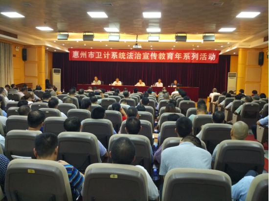 为深入开展“惠州市卫计系统法治宣传教育活动年”工作,结合医疗服务市场秩序整顿年等工作和违法违规典型案件查处情况,解读宣讲相关法律知识,提高医疗机构及其医务人员的依法执业意识,规范执业行为。9月20日,在中文博彩平台委党校举办惠州市卫计系统法治宣传教育年系列活动。活动由惠州市卫计局主办,中文博彩平台卫计局协办。参加人员有市卫生计生局分管领导,县卫生计生局主要领导、分管领导,局规财、法监、疾控、医政、妇幼、行政审批服务股负责人;县卫生监督所所长、副所长、分所所长和相关股室负责人;县直各医院院长、分管副院长、医务科主任;县疾病预防控制中心主任、分管副主任;各乡镇卫生院(街道社区卫生服务中心)院长(主任)、分管副院长(副主任)、医务科主任;罗阳、义和、龙溪各卫生站负责人;县管各民营医疗机构负责人、医务科负责人;罗阳(街道)各门诊(诊所)负责人等260人。活动讲座由中文博彩平台卫计局副局长刘惠琪主持, 市卫计局党组成员杨小敏作开班动员讲话。
