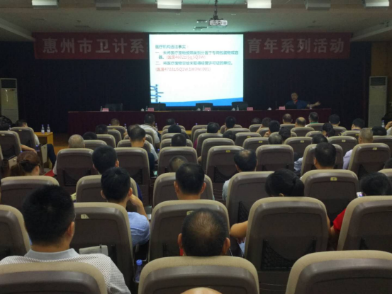 这次活动特邀惠州市卫生监督所副所长骆丁伟和市卫生监督所副主任科员胡火胜分别作《依法行医 莫逾红线》和《放射诊疗卫生监督管理》专题讲座,针对医疗机构依法执业和医疗质量管理整治行动中发现的问题及违法违规行为,从医疗机构和医务人员的行政法律风险、民事法律风险和刑事法律风险等“以案释法”进行学习教育活动,对相关涉医法律条文法规深入解读释疑,通过陈述大量的实际案例,警戒医务工作者要依法行医,莫逾红线。同时,就如何规范医疗服务管理,紧扣目前医疗环境重点对医疗机构、医务人员常见的卫生监督管理规范操作规程、传染病防治院感控制等实用技能深入宣讲,剖析各层面有代表性的个案,切合实际,通俗易懂,讲授的内容丰富实用, 所举的案例具体明了,使参加培训人员充分认识和理解了依法执业的重要性。