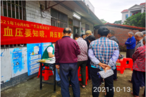 本次活动以“血压要知晓,降压要达标”为主题,通过举办健康知识讲座、设立宣传咨询点、张贴海报、发放资料等方式宣传高血压防治健康知识,为广大村民免费测量血压,告知其血压控制水平和注意事项,讲解预防高血压以及日常生活中控盐控压的注意事项等健康知识,增强他们早发现、早干预意识,并积极倡导限盐减重多运动,戒烟戒酒心态平的健康生活方式。