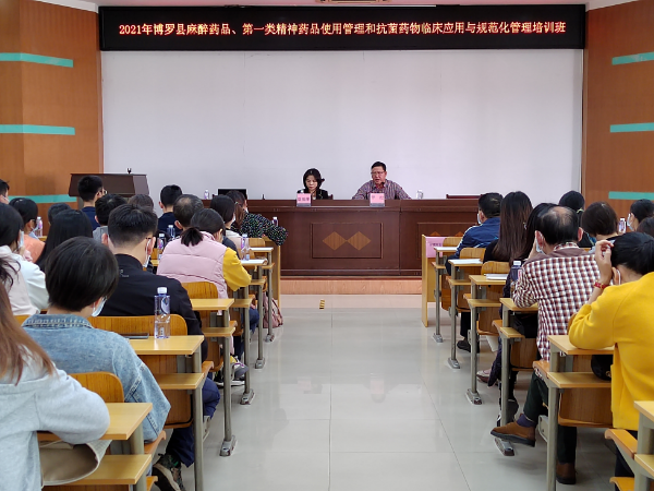 为进一步加强和规范我县医疗机构麻醉药品、精神药品的管理和抗菌药物的使用,确保用药安全和医疗质量,县卫健局于2021年11月18日上午在局机关四楼会议室举办2021年麻醉药品、第一类精神药品使用管理和抗菌药物临床应用与规范化管理培训班。参加培训人员有:全县各级各类医疗机构(含民营医疗机构)负责人、医疗管理部负责人、药学部门负责人,采购人员及医师、药学等医务人员等90余人。