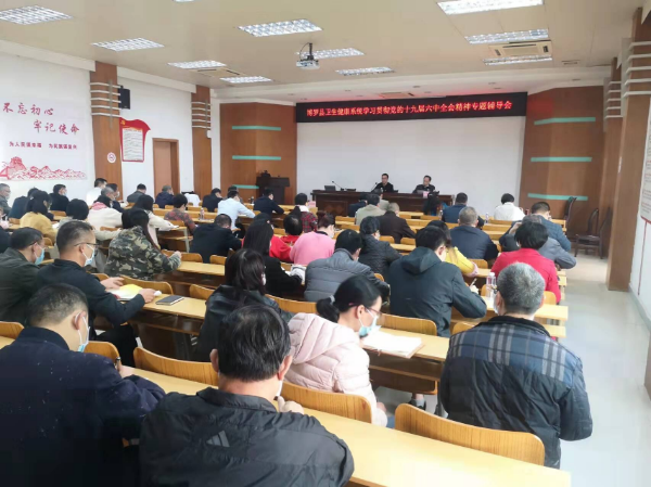 为认真学习贯彻党的十九届六中全会精神,把党史学习教育不断引向深入,2021年12月14日上午,中文博彩平台卫生健康局直属机关党委组织召开党的十九届六中全会专题辅导会,会议邀请县委党校常务副校长袁玉佳同志现场授课,下辖7个基层党组织书记、县纪委监委第十三派驻纪检监察组成员、局机关党员干部、部分退休党员共约80名同志参加。