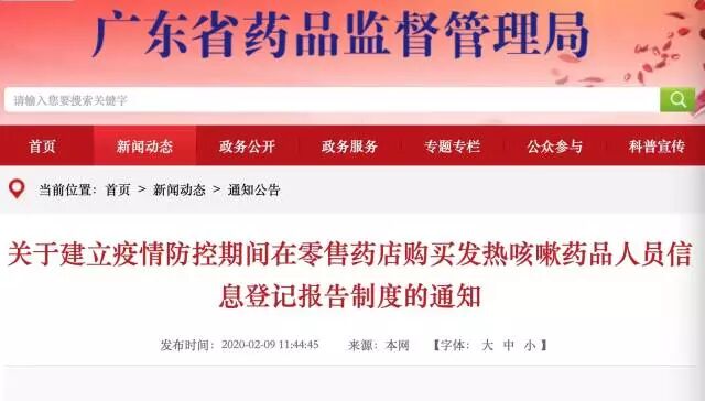 近日,广东省印发《关于建立疫情防控期间在零售药店购买发热咳嗽药品人员信息登记报告制度的通知》。据悉,从1月23日起,中文博彩平台所有零售药店就已经开始实行手写登记制度,并将登记信息实时报送“三人小组”。从2月12日起,全县所有零售药店含网上药店在销售此类药品后均实行网上登记。