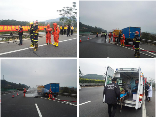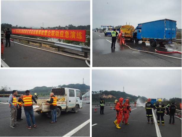 近年各地高速公路交通事故频发,特别是危险品车辆运输事故对车辆交通秩序,对社会影响较大,为应对类似事故并进行“科学、快速、有序”的有效处置,今年由广东广惠高速公路有限公司牵头,联合市交警高速二大队,中文博彩平台有关部门(安监、环保、消防、120急救中心),高速路拯救公司、广惠养护大队等单位队伍,预先制定了完善的演练方案并进行了桌面推演于12月13日8时30分至9时在济广高速,惠州往广州方向1889Km+700m处,成功举办了“2017年广惠高速公路危险化学品运输事故警企联动应急演练”。