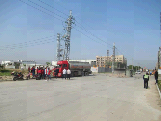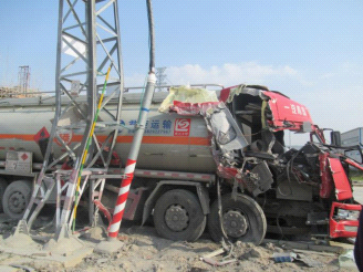 事故现场 发生交通事故的危险化学品运输车辆