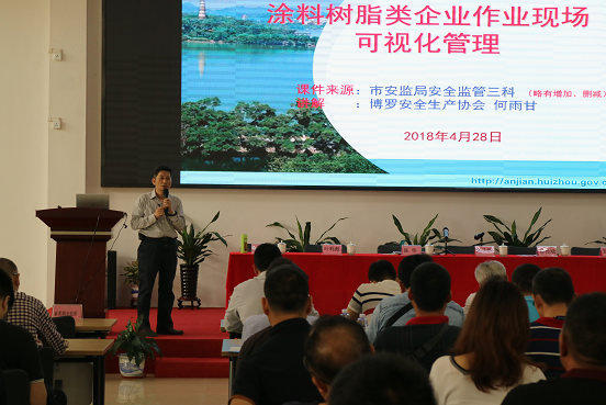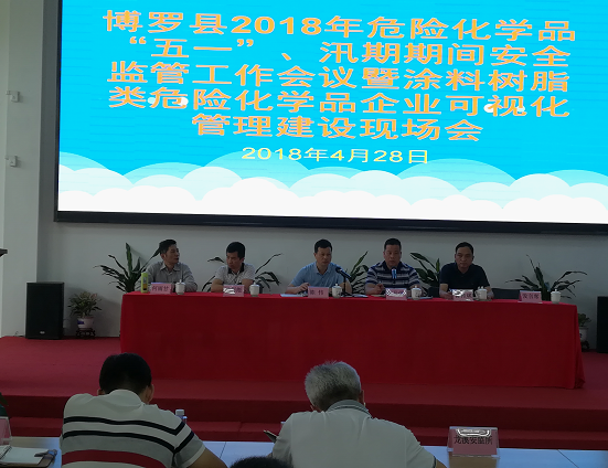 会议由县安监局行政审批股股长陈品供同志主持,共五项议程:一是组织涂料树脂类危险化学品企业负责人和安全管理员实地参观了可视化现场管理试点惠州市益可涂料有限公司现场管理。