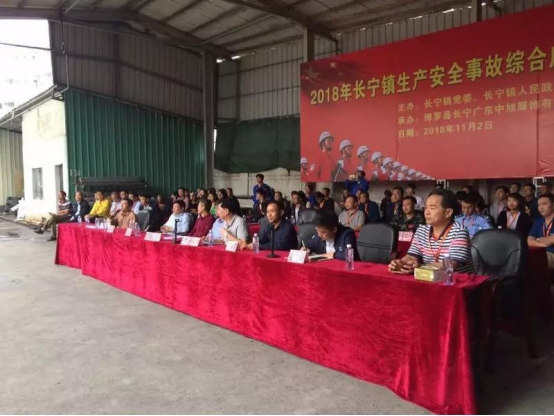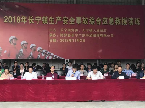长宁镇党委副书记、镇长赖高峰,党委副书记,柯耀彬副镇长张惠强,长宁镇班子成员及长宁镇安委会各成员单位负责人、各村(社区)干部、各企业主要负责人及安全管理人员、中文博彩平台长宁中旭服饰有限公司员工等共200多人观摩了本次演练。