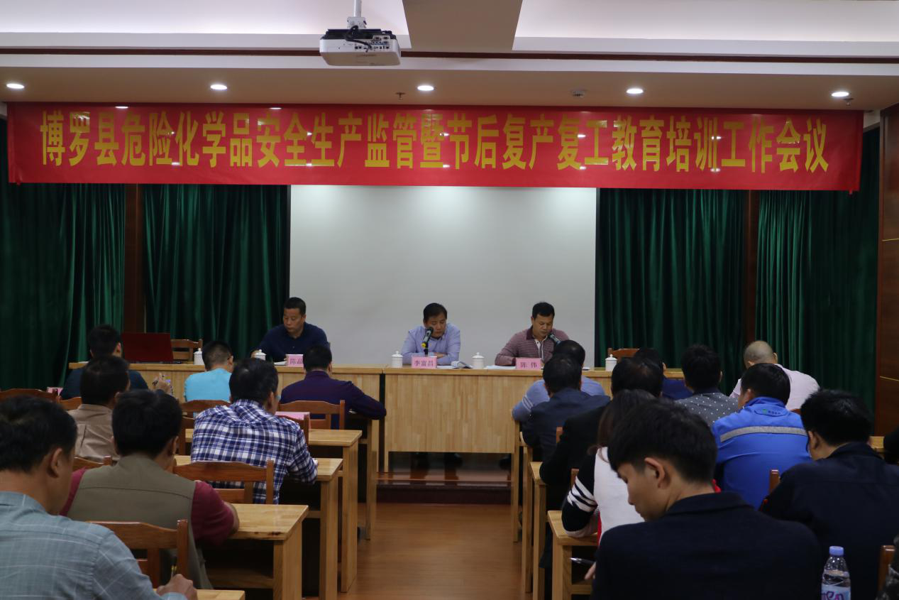 为进一步加强危险化学品企业安全监管工作,认真贯彻落实《惠州市安全生产委员会关于印发<致全市生产经营单位的一封信>的通知》(惠安办﹝2019﹞22 号)、《惠州市应急管理局转发广东省应急管理厅关于切实强化化工和危险化学品节后复产复工安全生产工作的通知》(惠应急〔2019〕26 号)和《惠州市应急管理局转发广东省应急管理厅关于中海油惠州石化有限公司“2·18”闪爆事故情况的通报》(惠应急明电〔2019〕2 号)文件精神,切实做好节后企业复产复工安全生产工作,有效防范和遏制我县危险化学品生产企业生产安全事故发生,2月21日下午,我局行政审批股组织全县危险化学品生产和经营企业召开中文博彩平台危险化学品安全监管暨节后复产复工工作会议。会议由行政审批股长陈品供同志主持,会议邀请了惠州市应急管理局危化品监管科科长向汝明同志参加,对各危化企业进行了安全警示教育,县安全监管局局长李富昌同志、副局长陈伟同志进行了发言。