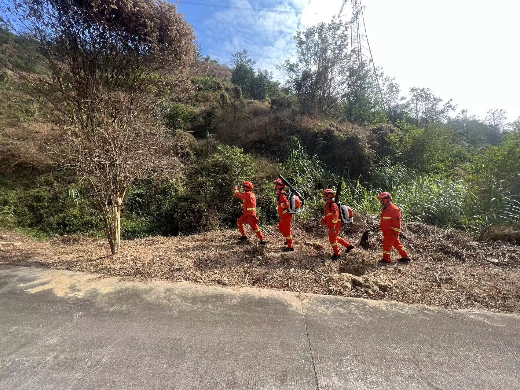 人分两组,由叶远辉大队长指挥,唐子胜、张金海队长各带一队,分别前往我县湖镇镇、柏塘、小金、泰美镇等森林火灾风险较高地区进行巡山巡防工作。