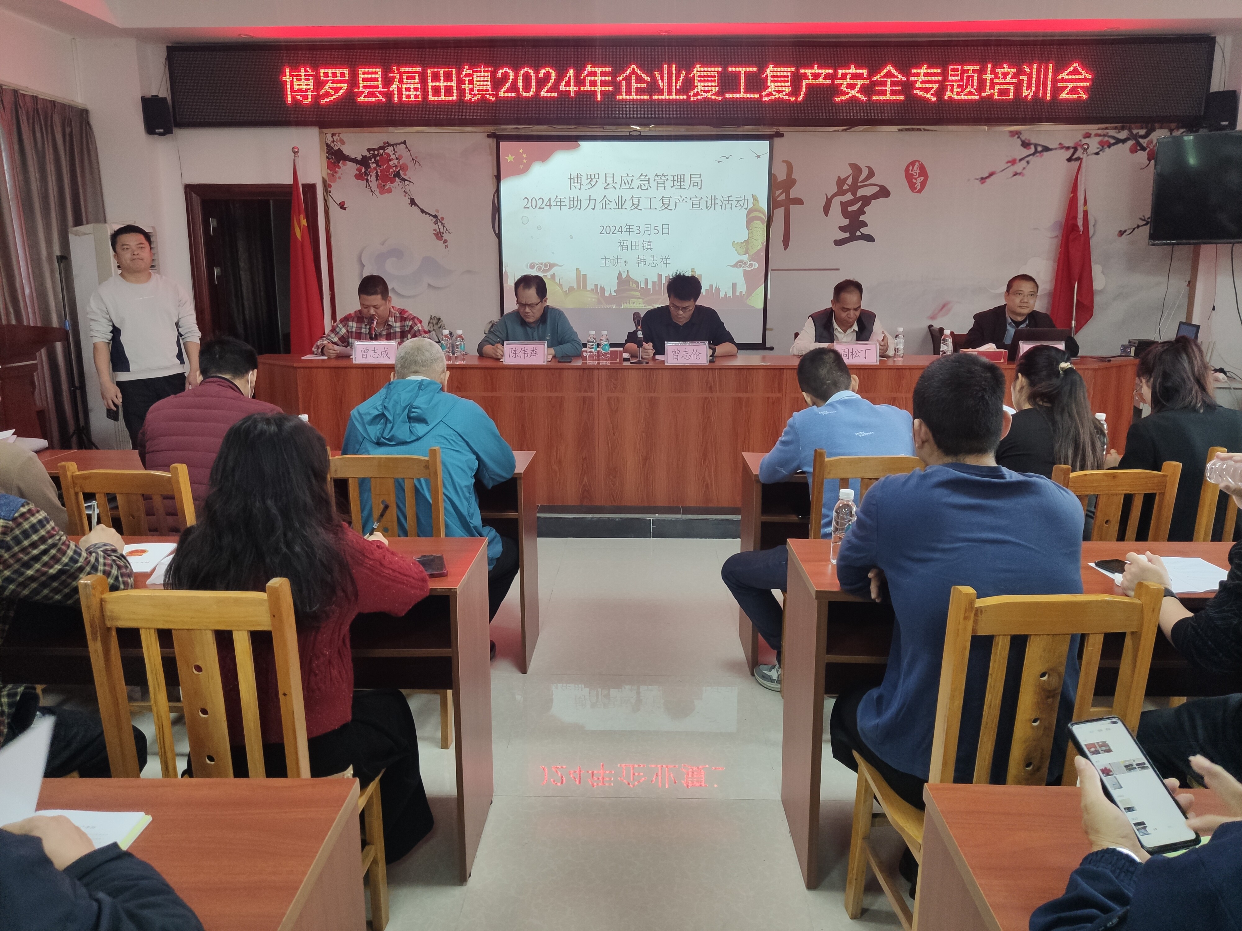为进一步提高企业人员安全生产意识,压实企业安全生产主体责任,全面做好企业安全生产复工复产工作,2024年3月6日上午,县应急管理局前往福田镇开展助力企业复工复产安全生产工作宣传教育培训会。