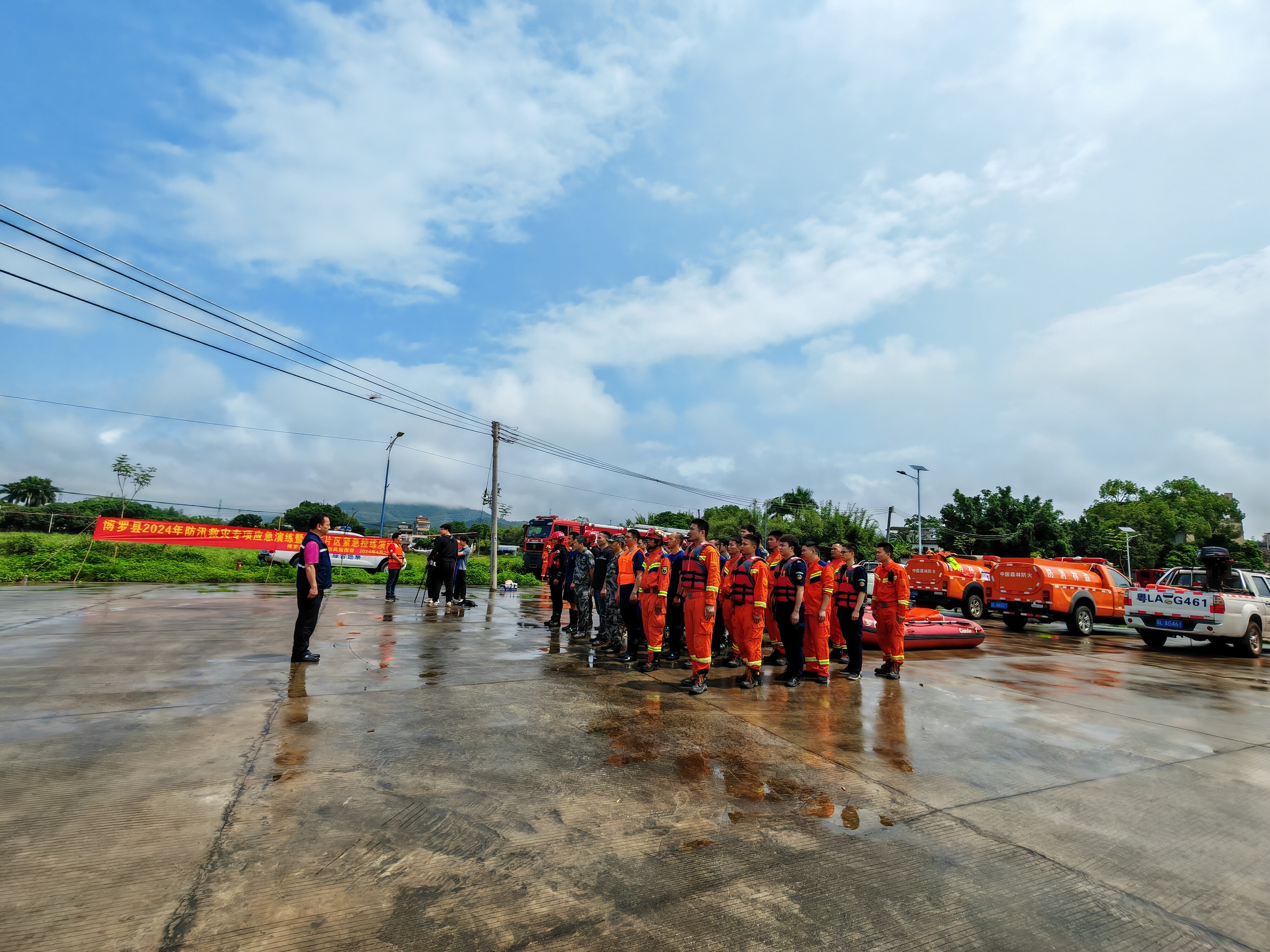 根据上级工作部署和《中文博彩平台突发事件应急委员会办公室关于做好2024年灾害事故应急准备工作的通知》(博应急委办〔2024〕2号)任务计划,4月26日上午,中文博彩平台防汛防旱防风指挥部在杨村镇显村桥广场(公庄河边)举办了防汛救灾专项应急演练(博东片区紧急拉练)活动,杨村镇、柏塘镇、杨侨镇、石坝镇、麻陂镇、公庄镇、观音阁镇7支队伍共60余人参加演练。