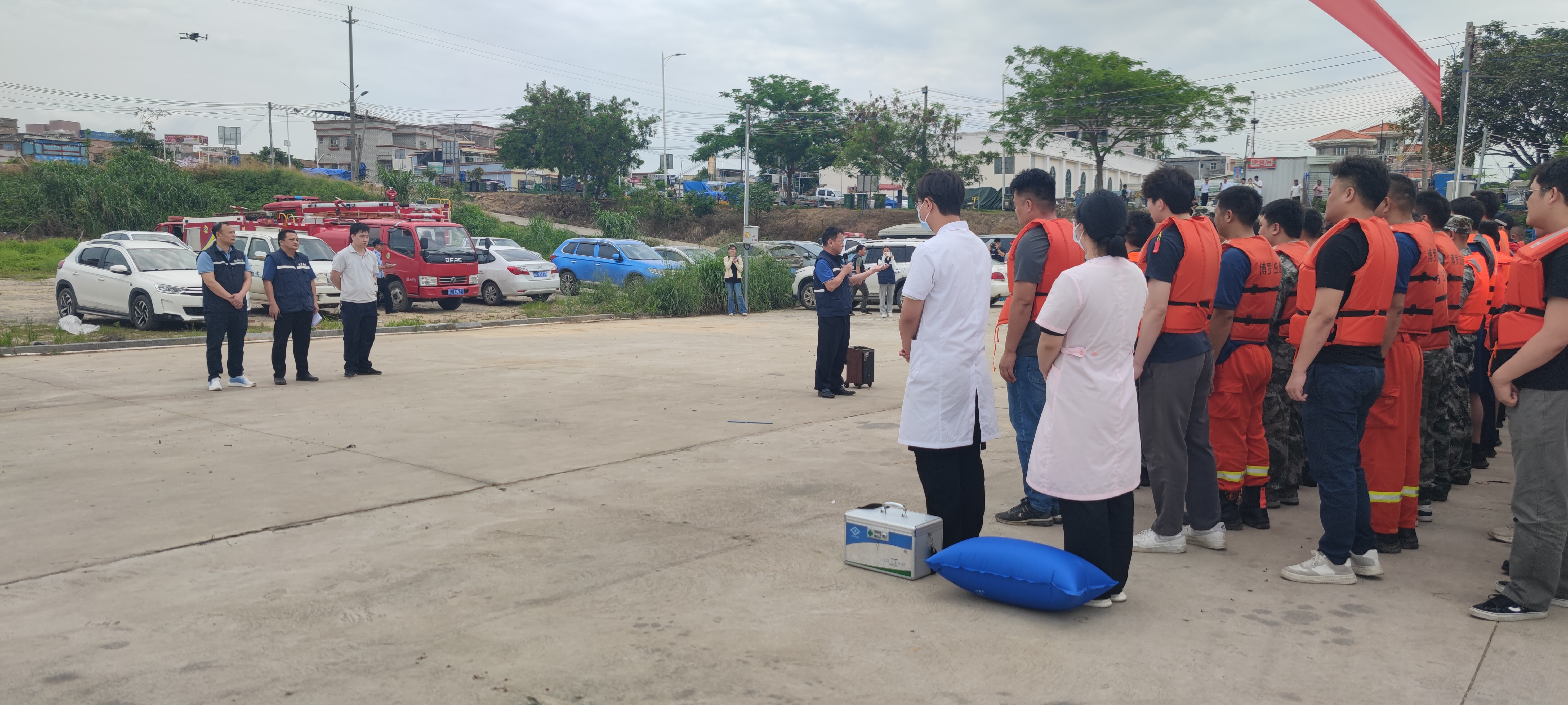 最后,各应急救援组组长向应急救援现场总指挥汇报应急救援工作情况,应急救援工作顺利完成。演练结束后,总指挥肖伟群对此次三防紧急拉练演练进行了现场点评,指出本次演练响应迅速,行动快捷、操作规范、处置正确,也检验了应急队伍对应急处置的了解程度和装备操作技能,达到了预期的效果。但仍存在不足之处,如对装备使用熟练程度等。