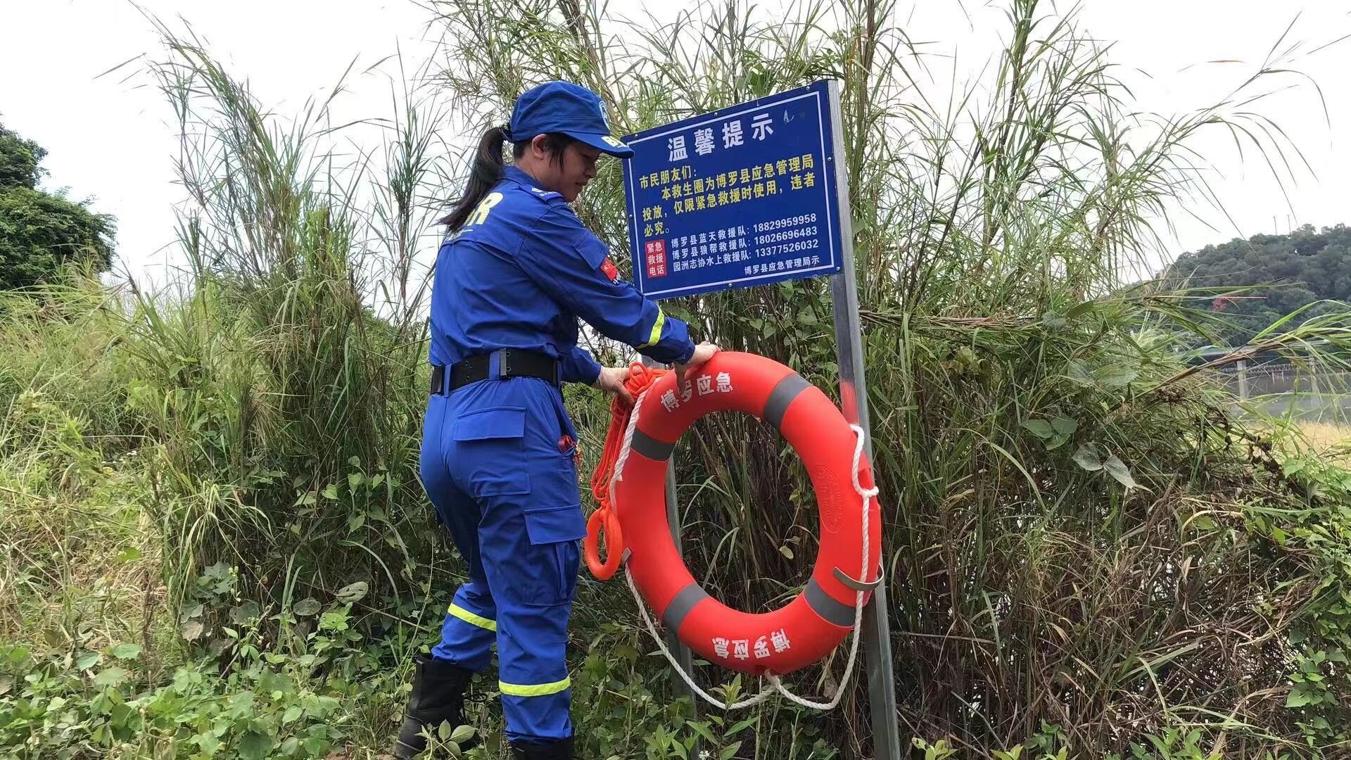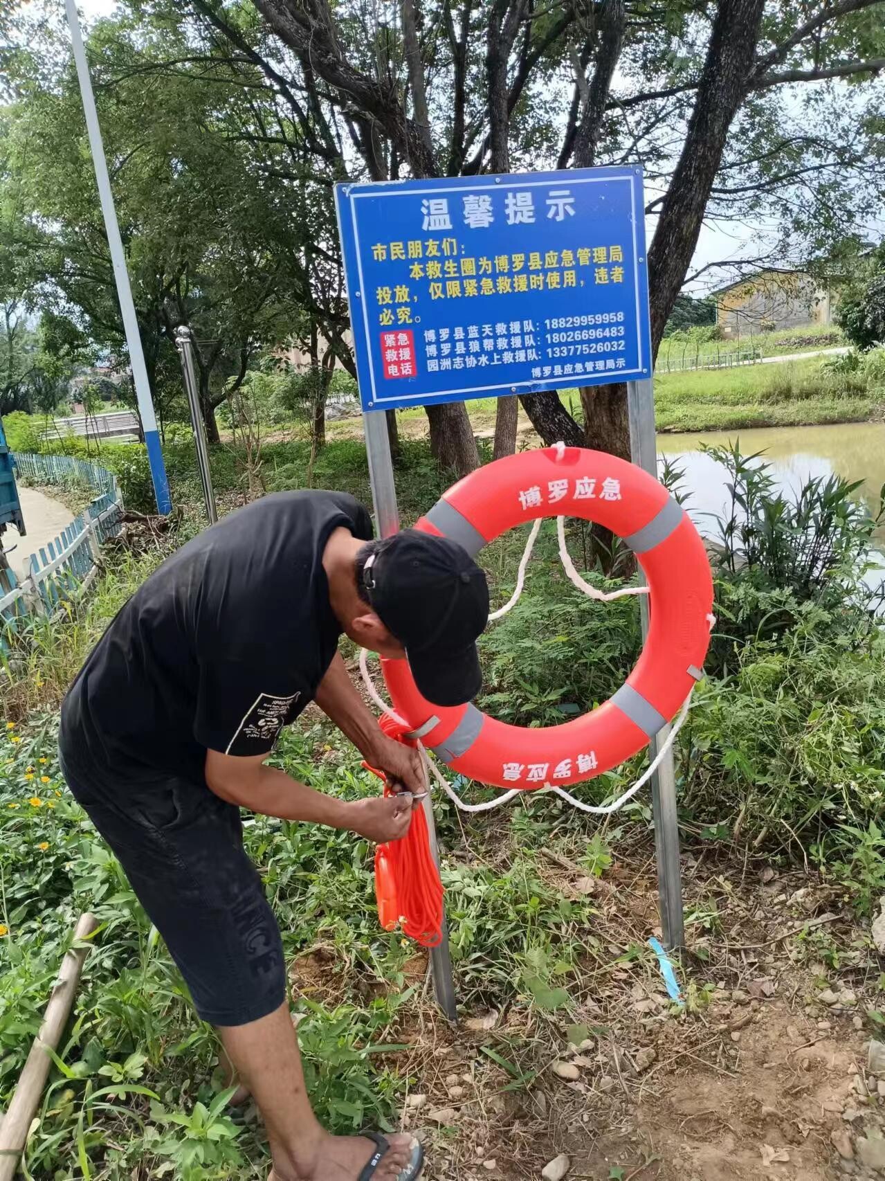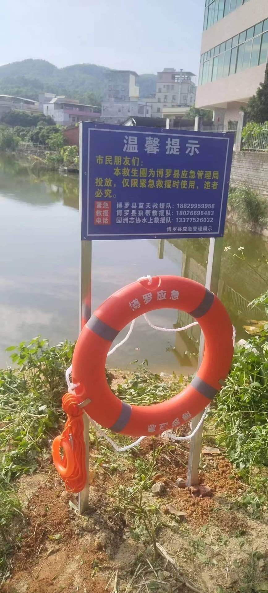 中文博彩平台应急管理局配置给18个镇(街)与3支公益救援队于江河湖库沿岸区域内总共投放安装1000套救生圈等救援器材,支架警示牌上挂救生圈和救生绳,上面标示着社会公益救援紧急电话。安全工作无小事,一旦发生溺水事故,保证安全情况下展开营救,保障落水者和救援者的生命安全。架起生命守护网。