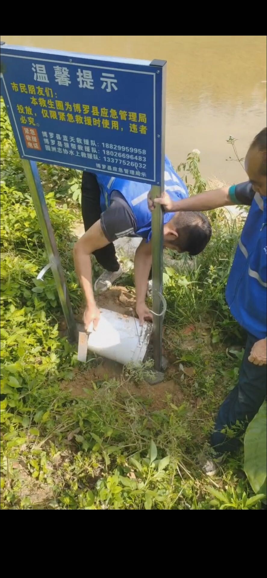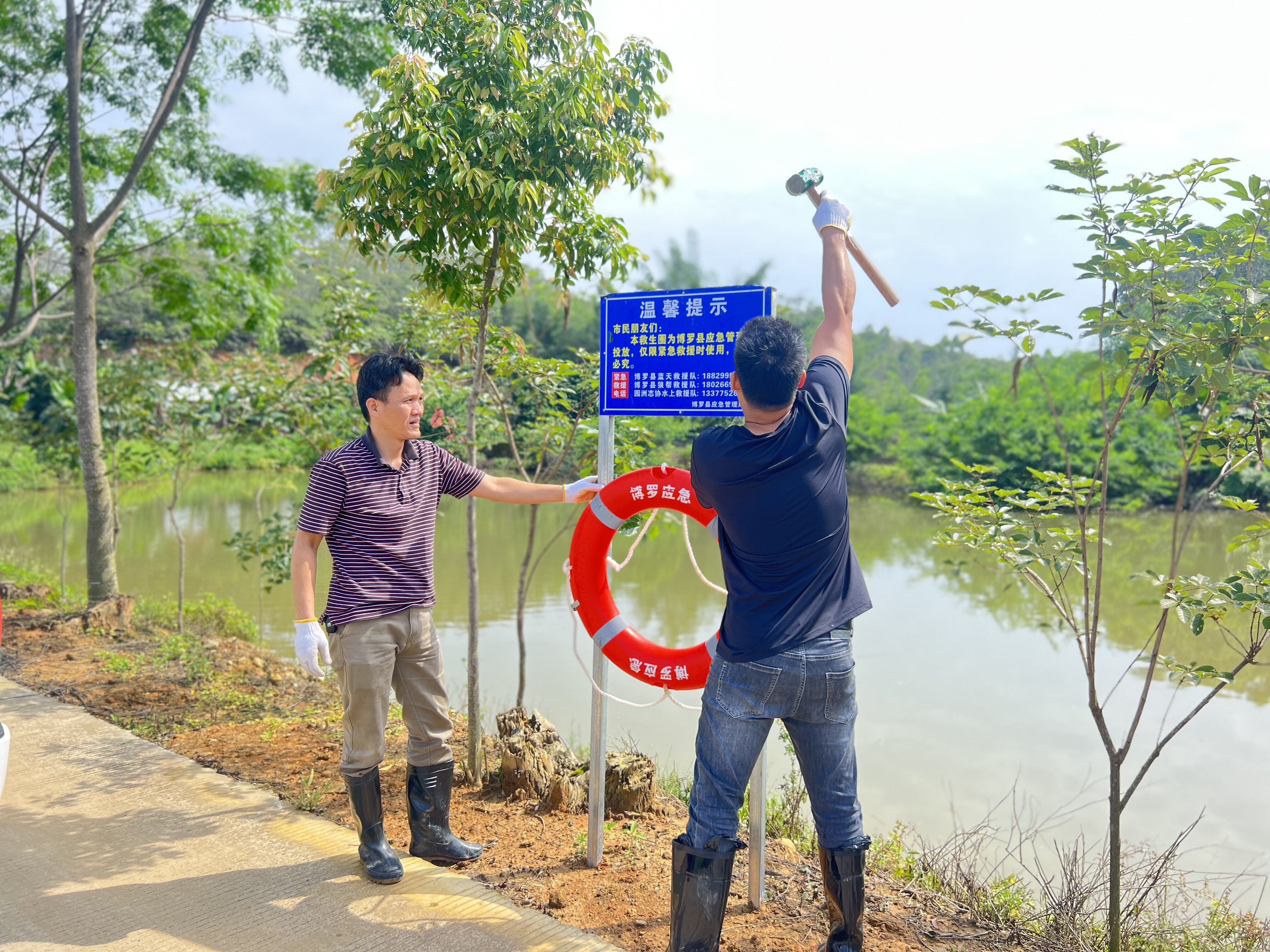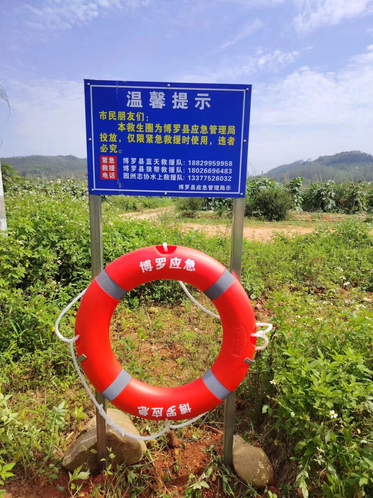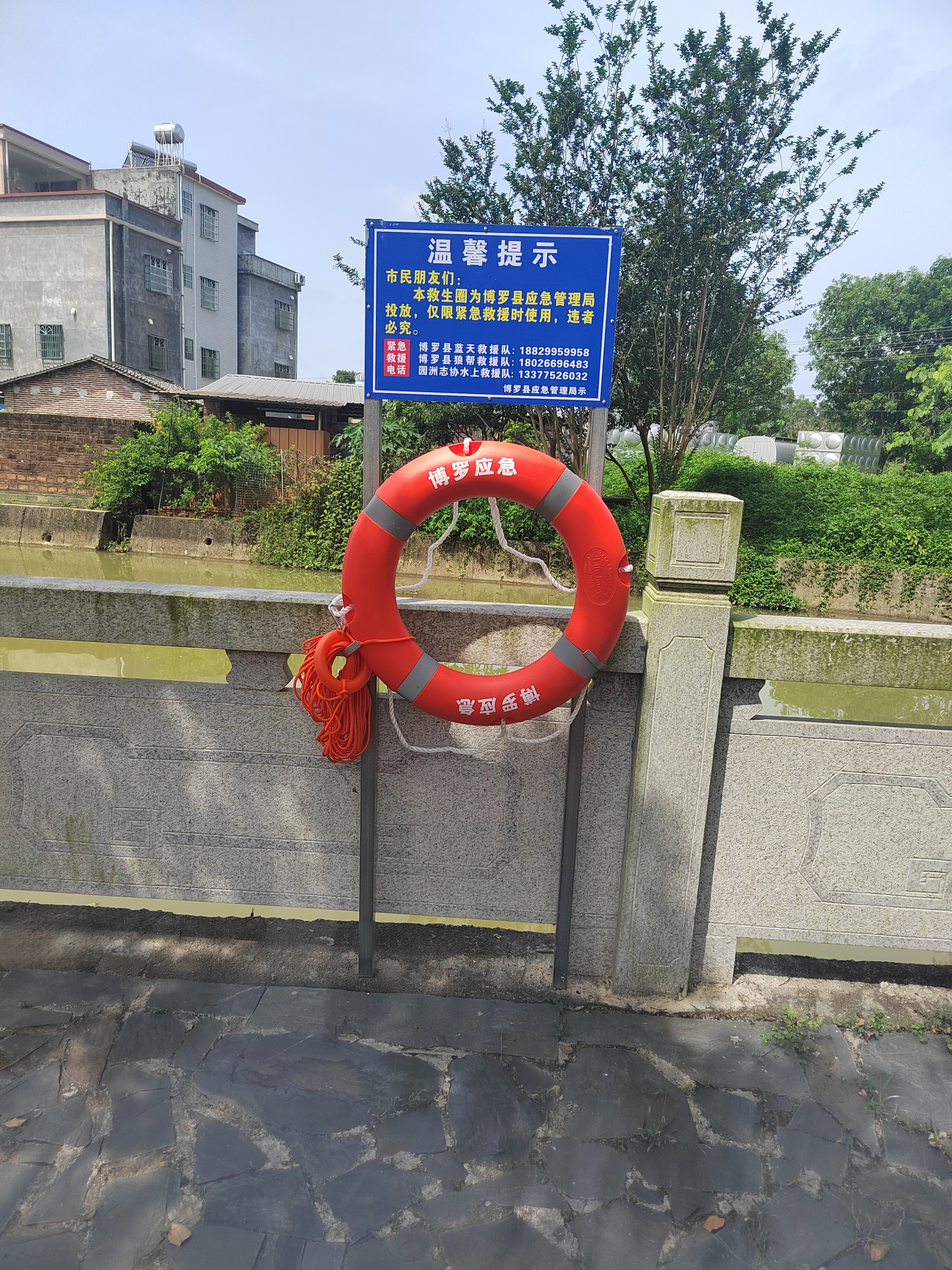 中文博彩平台应急管理局配置给18个镇(街)与3支公益救援队于江河湖库沿岸区域内总共投放安装1000套救生圈等救援器材,支架警示牌上挂救生圈和救生绳,上面标示着社会公益救援紧急电话。安全工作无小事,一旦发生溺水事故,保证安全情况下展开营救,保障落水者和救援者的生命安全。架起生命守护网。
