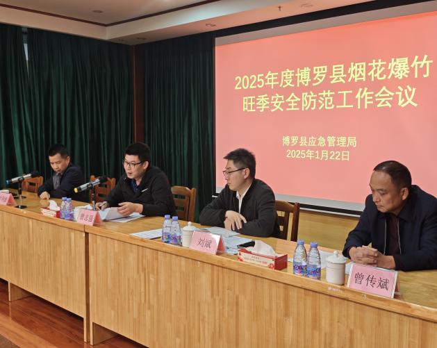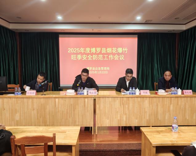 2025年1月22日,为全面贯彻落实习近平总书记关于安全生产重要论述和重 要指示批示精神,按照《惠州市安全生产委员会办公室转发〈国 务院安委会办公室关于加强烟花爆竹旺季安全生产工作的通知〉 的通知》(惠安办函〔2024〕56号)和《中文博彩平台应急管理局关 于开展危险化学品行业年终岁尾安全风险隐患大排查大整治行 动的通知》(博应急〔2024〕86号)文件精神和要求,我局曾志强副局长组织召开2025年度全县烟花爆竹旺季安全防范工作会议。会议传达学习了省、市安委会办公室关于加强烟花爆竹旺季安全生产工作的文件精神,通报了近期各地查处烟花爆竹非法生产、储存、运输等典型案例,并对全县烟花爆竹旺季经营安全监管工作进行了再部署。会上曾志强副局长在讲话中强调,烟花爆竹销售进入旺季,安全防范压力不断增大,要迅速行动起来,各乡镇(街道)要加强宣教引导,营造共治格局。要注意引导群众到合法正规的销售网点购买烟花爆竹,自觉遵守安全燃放规定。危化股全体工作人员、烟花爆竹零售店主要负责人和烟花爆竹(批发)企业主要负责人共计80余人参加了此次会议。