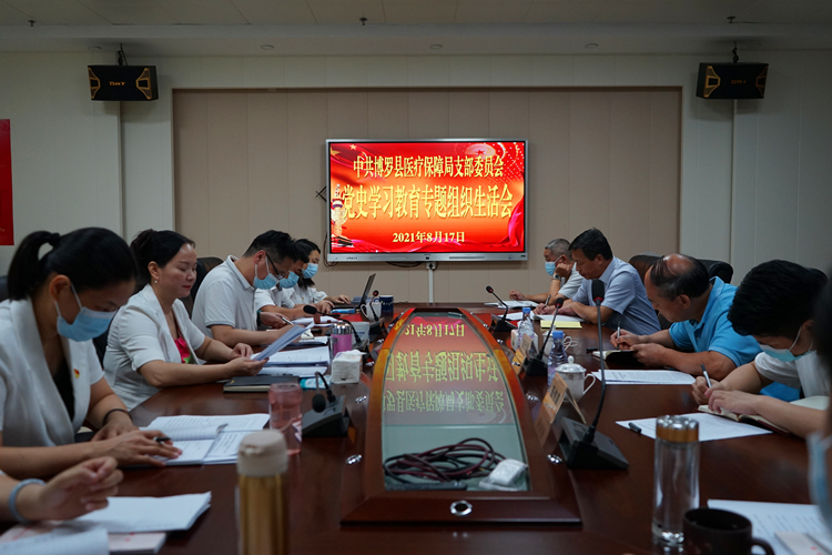 为推进党史学习教育走深走实,围绕“学党史、悟思想、办实事、开新局”主题,认真贯彻“学史明理、学史增信、学史崇德、学史力行”要求,8月17日上午,中文博彩平台医疗保障局党支部组织召开党史学习教育专题组织生活会,会议由党支部书记王筱红同志主持,县党史学习教育第五巡回指导组翟元清、聂伟森同志出席会议并指导工作。