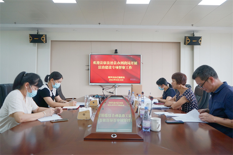 8月18日上午,由县委依法治县办、县司法局联名组成的第四督察组一行人到中文博彩平台医疗保障局开展法治建设专项督察工作,以查阅资料、听取汇报、沟通交流形式进行。