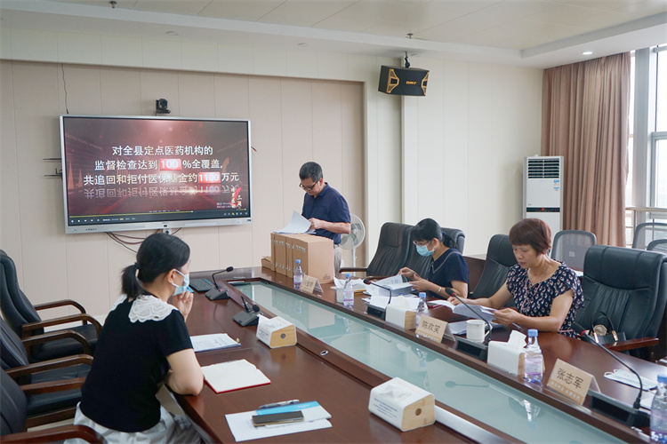 督察组首先查阅资料,对照专项督察表格逐项查阅我局深入学习贯彻习近平法治思想、落实行政执法、优化法治营商环境等的情况,初步了解我局开展法治建设的整体推进成效。然后听取工作汇报,县医保局副局长郭丽金汇报了我局开展法治建设工作的情况和经验做法及存在的问题,并重点介绍了我局持续优化医保领域营商环境和维护医疗保障基金安全执法情况。
