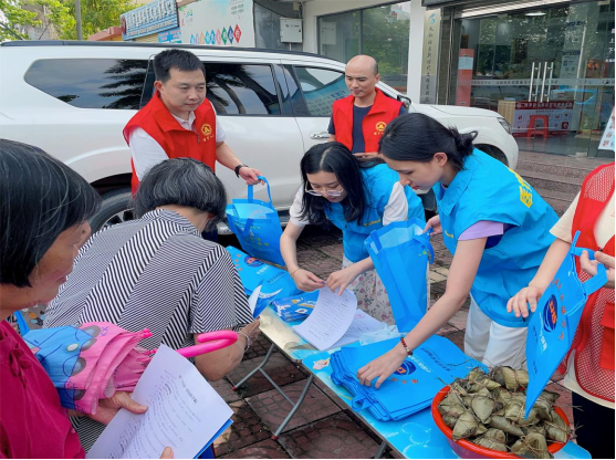 随后,志愿者们带着亲手包好的粽子来到义和社区党群服务中心门口,为社区老人、小孩以及辛勤工作的环卫工人送上爱心粽子,在“赠粽”时表达祝福,同时,志愿者们向过往的群众发放医保知识宣传手册,解答医保知识,宣传医保政策,让社区群众感受到浓厚的端午佳节氛围和满满的医保情怀。