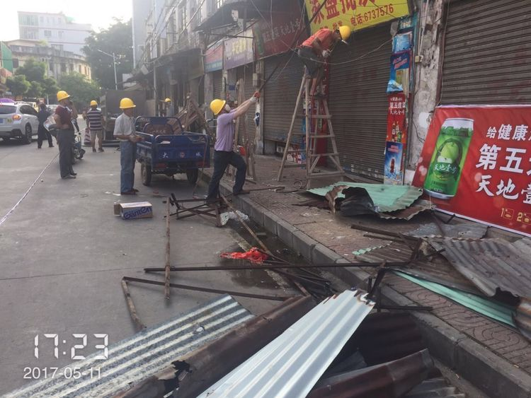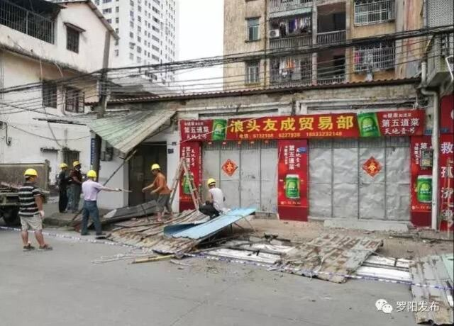 为确保老城区在全国县级文明城市测评中不丢分不失分,进一步改善城市环境,根据县委、县政府关于整治县城老城区违规搭建广告牌灯箱、雨棚、铁皮棚等构筑物的工作部署,2017年5月11日起,罗阳镇联合县住建局、县城管大队、罗阳交警中队等部门对县城老城区违规搭建进行整治。