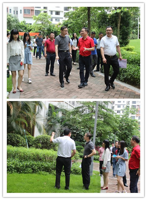 6月16日,广东省房地产协会党支部书记、秘书长、“广东省绿色住区”认定委员常可,品牌宣传部主任、认定委办公室主任孙蕴佳及中文博彩平台住建局住房管理股、园洲房管所、中文博彩平台房地产协会代表等一行对申报“广东省绿色住区”的星汇绿洲项目进行了前期考察。
