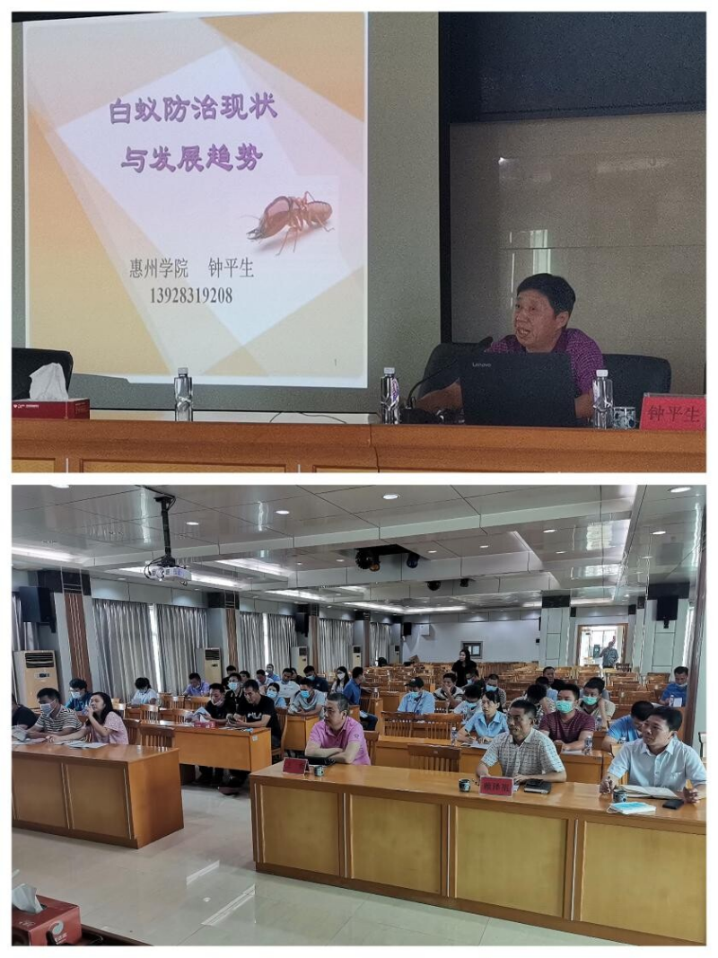 下午,惠州学院生命系钟平生教授为我们讲解《白蚁防治现状和发展趋势》,为我们科普了房屋白蚁防治专业知识。钟平生教授是惠州学院生命科学学院教授、博士,惠州市拔尖人才,他长期从事农业昆虫、入侵有害生物综合治理教学与科研工作,是中国白蚁学会、广东省昆虫学会、广东省动物学会会员、惠州市食品专家委员会副主任委员。培训班上,学员们为钟教授的精彩讲解不时鼓掌,现场互动环节也是踊跃参与。