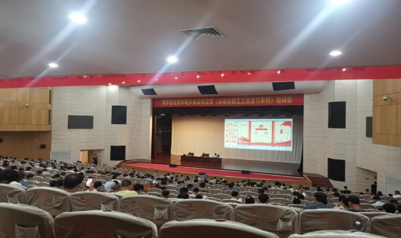 为促进《保障农民工工资支付条例》贯彻实施,进一步规范全县建筑行业农民工工资支付行为,2020年8月27日上午,县住建局党组成员、总经济师陈云彬在县文化中心影剧院会议室组织召开宣贯《保障农民工工资支付条例》(以下简称“《条例》”)培训会。惠州学院副教授、广东法村律师事务所律师李才锐受邀在会上进行专题授课。县住建局建筑市场管理股及相关股室人员,各镇(街道)村建所负责人,各建设、施工、监理单位项目负责人及项目劳资管理员共500多人参加会议。