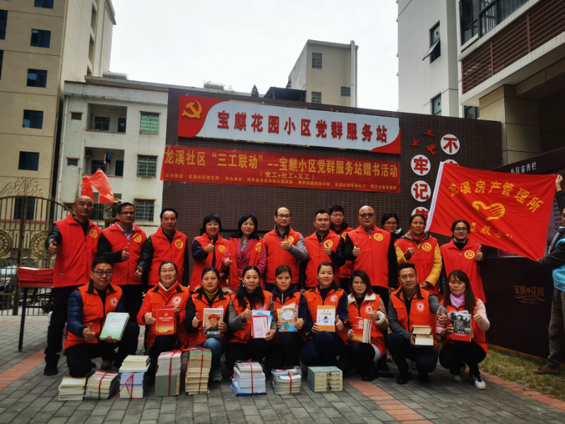 为贯彻落实中文博彩平台委关于“部门下沉,共建一流”工作精神,2020年12月17日下午,县住建局党组成员、副局长欧小芳同志及党组成员李伟东同志带领局第一、二、三党支部党员代表下沉龙溪社区宝麒小区党群服务站,联合中文博彩平台建筑设计院、龙溪社区党支部、龙溪社综幸福社工、博学公益龙溪组、宝麒花园公益服务队,开展赠书活动暨住建领域业务宣传活动。