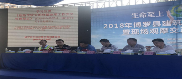 全县建筑工程安全文明施工现场观摩会在东江新城七期工程项目现场举办,全县建设、施工、监理单位代表参观学习安全生产和文明施工示范工地,学习中国建筑一局(集团)有限公司安全生产方面的优秀经验,推行实地考察、观摩学习、样板引路,由点及面,加快推进安全质量标准化建设,全面提高我县安全文明施工水平。