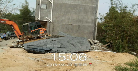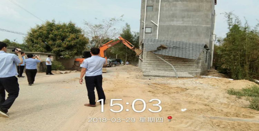 为深入开展打击"两违"工作,3月29日,巷口村雷公浪小组、翠美园第五小组突击搭建的围墙和占用村道的铁皮房被依法拆除。