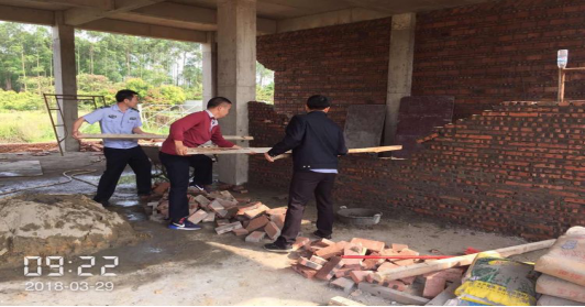 罗阳街道办江南片区为城市规划区,一直是"两违"整治的重点区域之一。我局规划建设监察队巡查发现后,于3月19日发出了拆除通知书,但当事人不予理会。在县"两违办"的支持和罗阳街道办的联合行动下,由我局主要领导带队对上述两宗违法建设给予制止和强制拆除,其中拆除占用村道的铁皮房面积共120㎡,有效控制了"两违"现象的蔓延。
