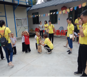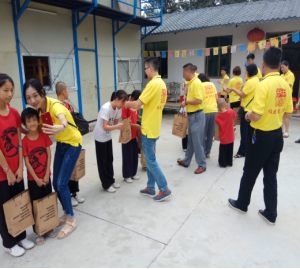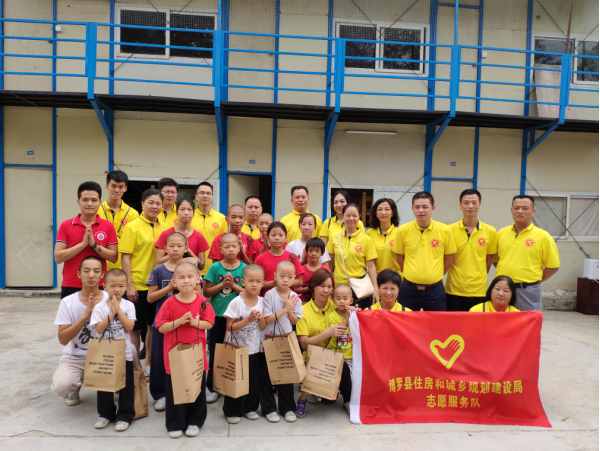 活动当天,志愿者们首先来到横河镇石出头村走访慰问这里的孤儿。一位年近60岁的常空和尚收留了15个孤儿,这些孤儿来自五湖四海,有的十几岁,有的才几个月大,常空和尚含辛茹苦带着这15个孤儿生活、学习、练书法、练武术。志愿者们为这里的孤儿送上慰问品(鞋子、袜子),与孤儿们近距离接触,一起聊天一起玩耍,欢声笑语汇成一片欢乐的海洋。