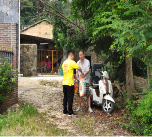 接着,志愿者们先后走访慰问了横河镇石出头村13户低保贫困户,为每户贫困户送上油米。在走访慰问活动中,志愿者们每到一户人家,与贫困户亲切交谈,询问他们身体状况、生产生活情况、子女教育问题,并鼓励贫困户要增强信心,充分利用自然条件开展致富工作,早日实现脱贫目标。