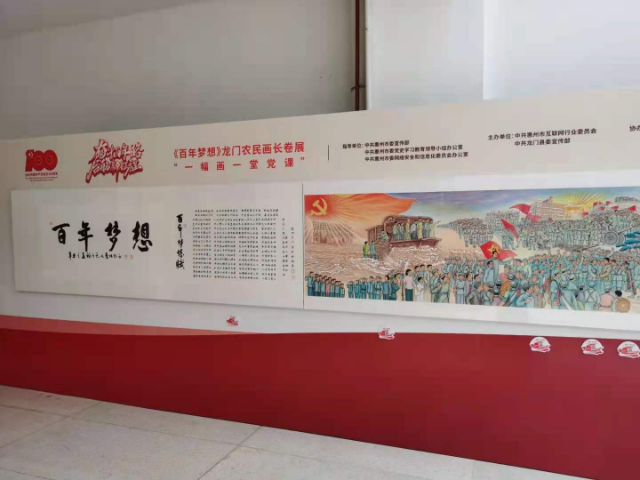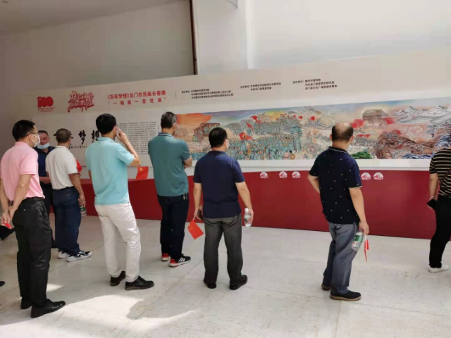 接着,党员们来到惠州博物馆参观“奋斗百年路 启航新征程”——《百年梦想》龙门农民画长卷。该画卷长2021厘米、宽71厘米,分别代表建党百年和“七一”党的生日。南湖之畔起航的一叶红船、南昌起义的第一声枪响、万里长征的坚定脚印、全民族抗战的同仇敌忾、开国大典的翻身站立、改革开放“杀出一条血路”、新时代脱贫攻坚战、载着中国梦的“中国号”巨轮奔向第二个百年奋斗目标……《百年梦想》龙门农民画长卷浓墨重彩地描绘了中国共产党百年奋斗历程及取得的辉煌成就,深铭载舟之情,既是一幅史诗级画卷、一部可视化的“史诗”,又是一卷微缩版党史、一堂深入开展党史学习教育的生动党课。