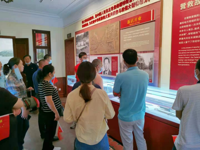 党员们首先来到惠城区东湖旅店营救中国文化名人陈列馆追寻红色记忆,学习党史知识。陈列馆由原东湖旅店改造而来,全馆分为“营救之路”“转移惠州”和“党旗高扬”三大展区,借助文字讲述、图片佐证、实物展示、多媒体演绎等方式,全面真实展示东湖旅店秘密大营救历史。从香港沦陷区抢救文化名人,是中国共产党一次具有重大意义的事件。东湖旅店作为接待护送爱国民主人士和文化界爱国人士基地,历时半年之久。它的名字承载着在那一段抗日烽火岁月里,有着不可磨灭的红色记忆,提醒后人莫忘革命先辈艰苦奋斗的历程,抚今追昔,不忘初心。