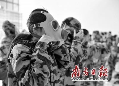 “呜……”随着防空袭警报预先警报的响起,在人防应急救援人员的指挥下,2000余名师生立即携带各自的必备物品,从教室迅速有序地疏散撤离至操场,共同完成了一场防空疏散演练。近日,省人防办组织全省各地级以上市人防系统,在阳江市广东两阳中学开展人防宣传教育进学校防空防灾技能训练演示活动,以提高师生防空防灾疏散能力。活动当日,50名学生代表还利用人防应急模拟体验大篷车开展了防空防灾知识技能现场教学,并进行防化服、防毒面具等穿戴演练。(来源自《南方日报》2017年5月3日A09版)