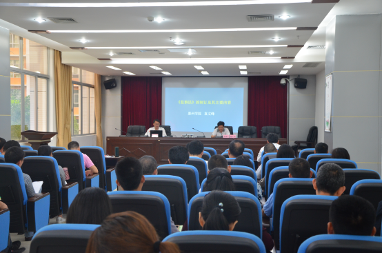 5月4日,惠州市人防办邀请惠州学院政法系袁文峰教授在指挥中心二楼会议室开展了一次《监察法》及宪法修正案专题学习培训讲座。全办干部职工50余人参加了讲座。