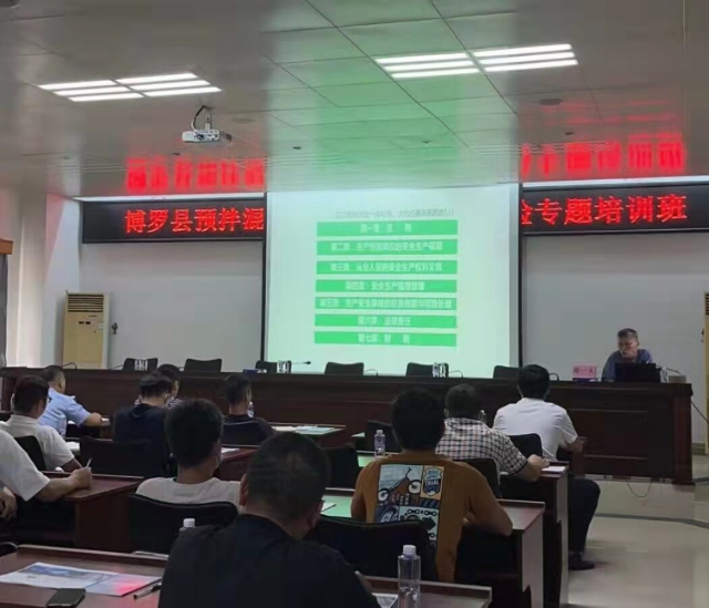 培训班邀请了广东省安全生产技术中心有限公司周一夫进行授课。周一夫专家按照培训流程,解读了新发布的《安全生产法》,通报混凝土搅拌站企业现场共性安全隐患问题,分析混凝土搅拌站企业相关的事故案例及主要安全风险,讲授推广安全管理中先进的经验等内容。