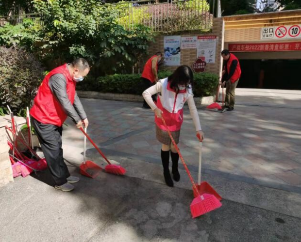 活动中,志愿者们被分成两组,分区域对小区进行环境卫生清洁。志愿者们带着扫把、火钳等工具对小区街道、居民房前屋后等各个角落进行打扫,全面清扫卫生死角30多处,清理牛皮廯35平方米,清理各类蚊虫孳生场所6处。同时,劝导小区居民做好“门前三包”工作,引导居民做到垃圾不落地、不乱吐痰、随手拾捡垃圾进垃圾桶等,确保整体环境卫生干净整洁。