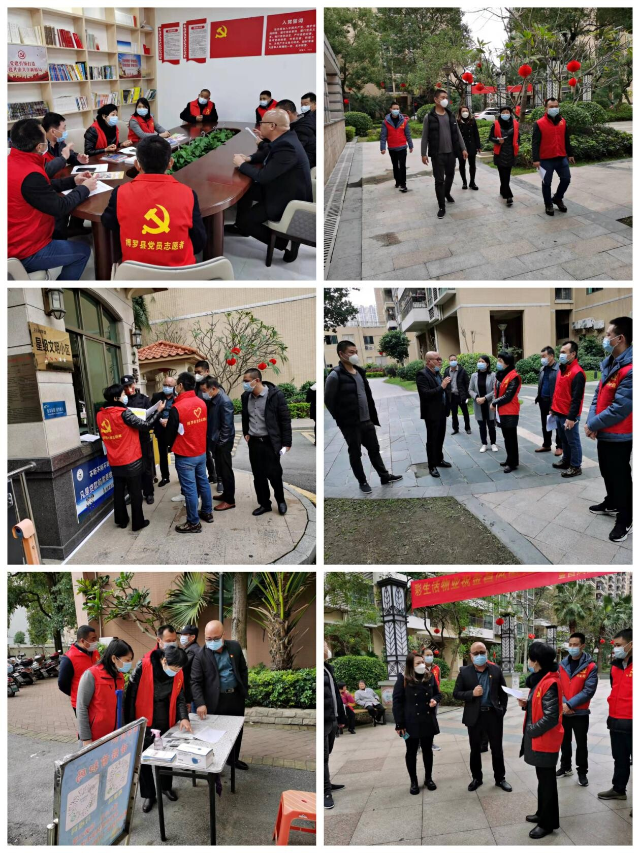 为进一步强化物业小区的防疫工作,严格落实上级防疫工作相关要求,根据中共惠州市委组织部《关于充分发挥基层党组织和党员作用进一步建立健全平战结合疫情防控机制的通知》(惠市组通〔2022〕6号)精神,2022年2月7日上午,局党组成员、直属机关党委专职副书记欧小芳、局四级调研员黄维实、局第三党支部书记刘卫权带领10名党员志愿者下沉龙溪社区金昌凤凰苑小区、中央华府小区开展物业防疫工作检查。