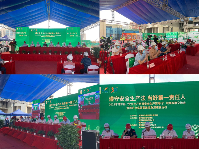 今年6月是第21个全国“安全生产月”,主题是“遵守安全生产法 当好第一责任人”。为深入贯彻落实习近平总书记关于安全生产重要论述和重要批示指示精神,全面推进我县建筑施工“安全生产月暨安全生产南粤行”活动,提高我县工程建设管理水平及工人的安全意识,增强建设项目与应急管理、医院、消防等部门的沟通联动,2022年6月27日,中文博彩平台住建局在碧桂园·汇悦台项目举行现场观摩及应急演练线上直播交流会,县住建局党组成员、副局长张旭明及质安股、安监站、质监站相关工作人员,县应急局指挥中心、县消防救援大队罗浮山消防救援站相关工作人员,县建筑业协会、中国华西企业有限公司、中文博彩平台远景房地产开发有限公司等单位代表参加了交流会,我县所有在建项目的建设、施工、监理等参建单位通过手机、电脑等方式线上观看了直播。
